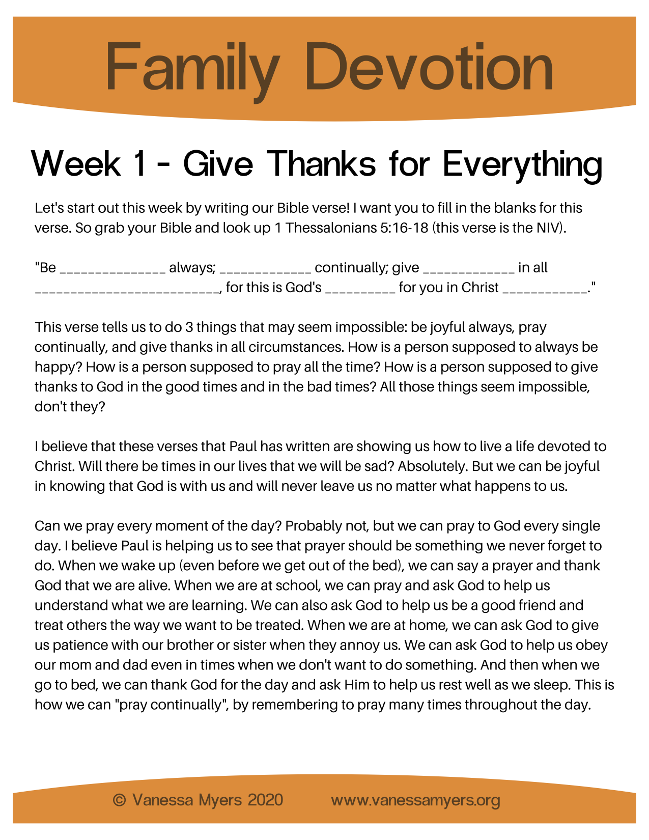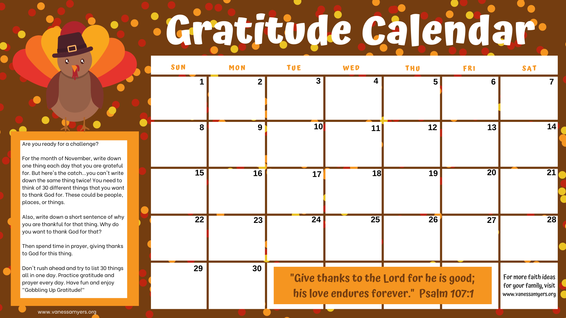 Help your children practice gratitude! Gobble Up Gratitude is is a 4-week devotional resource that provides devotions and activities for kids and families. This resource for families teaches kids the importance of giving thanks to the Lord and showing our gratitude to Him. The Bible verses for this month focus on giving thanks for everything, the goodness of the Lord, peace and thanksgiving, and gratitude through song. Each week families will fill out a gratitude calendar and feed their “turkey” some gratitude!