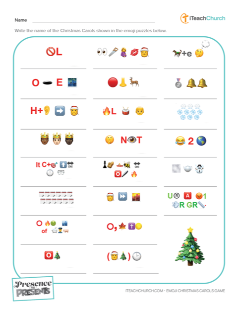 This game features 22 emoji combinations that give a clue to a popular holiday song! This pack includes Keynote and ProPresenter files as well as jpgs and movie files for you to use in any software you have available to play on screen.
