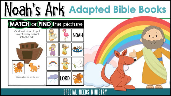 Made for special needs ministry, Adapted Bible Books – Noah's Ark – are designed for children with special needs, particularly children with language disorders.