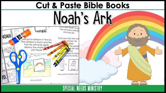 Made for special needs ministry, Cut & Paste Bible Books – Noah’s Ark – are designed for children with special needs, particularly children with language disorders.
