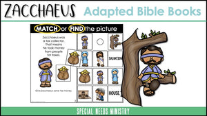 Made for special needs ministry, Adapted Bible Books – Zacchaeus – are designed for children with special needs, particularly children with language disorders.